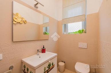 Al piano seminterrato si trova una grande sala hobby finestrata, un bagno completo con antibagno, una lavanderia, una dispensa, una cabina armadio e una stanza adibita a palestra.