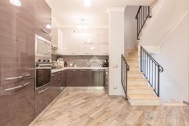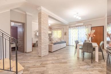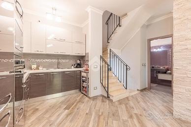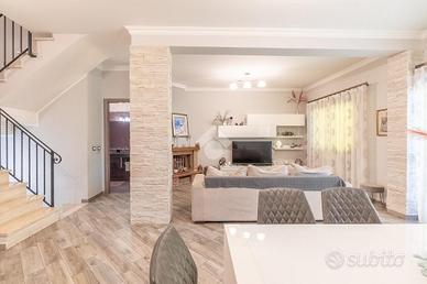 Proponiamo in vendita una porzione di villa di recente costruzione con giardino, portico e box auto.