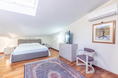 Al piano superiore vi è la camera da letto matrimoniale con secondo bagno. Attraverso una comoda scala si accede poi al piano seminterrato con disimpegno, camera con cabina armadio ed ulteriore bagno.