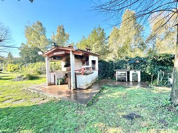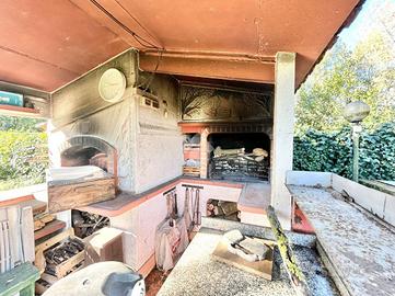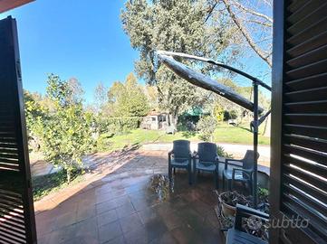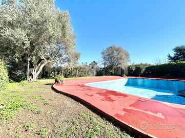 DIVINO AMORE, Via Michele Lessona, proponiamo prestigiosa villa con piscina e parco privato di 1600 mq; la villa costruita nel 1988, si dispone su 3 livelli ed è dotata di due patii e di una tettoia removibile che può ospitare comodamente 2 auto. Lo stato interno è originale ed in buono stato di conservazione. Riscaldamento e condizionamento sono autonomi ed è presente la canna fumaria. I soffitti sono ricoperti da travi in legno molto suggestive. Al piano seminterrato l'altezza del soffitto è di 2,50 mt. I vani sono 6,5. La villa è divisibile in due unità abitative completamente autonome.