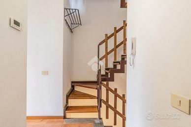 Al piano seminterrato, zona giorno composta da salone con camino, angolo cottura e bagno. La zona notte invece occupa i restanti due livelli e si compone di tre camere da letto di cui due matrimoniali, tre balconi e due bagni completi.