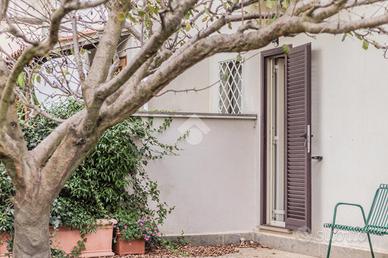 Gli spazi esterni, divisi tra parte mattonata e giardino, garantiscono momenti di relax e convivialità.
