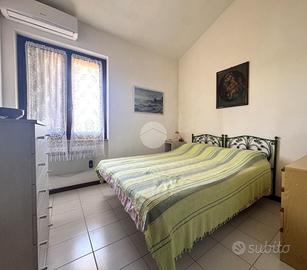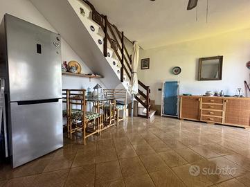 Dalla scala interna si accede al piano superiore in cui troviamo il bagno dotato di box doccia e finestra,e la zona notte, composta da due camere da letto matrimoniali, entrambe climatizzate con armadi a muro e una dotata di balcone.