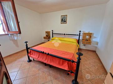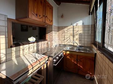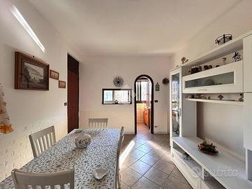 Entrando, si viene accolti da un soggiorno luminoso. La casa è composta da una cucina separata, adiacente al soggiorno abitabile.
