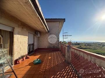 Proponiamo in vendita una porzione di villa bifamiliare situata nel Parco Veronica, nella zona alta di Scalea, in contesto tranquillo e panoramico con vista mare. L'immobile dista circa 10 minuti in auto dal mare ed è raggiungibile anche a piedi in circa 30 minuti, per chi desidera percorrere le caratteristiche vie del paese. La proprietà si presenta in buone condizioni, abitabile da subito, e si distingue per la sua funzionale distribuzione su più livelli, ideale anche per due nuclei familiari grazie alla presenza di due unità abitative. Al piano terra troviamo un appartamento composto da ingresso su soggiorno con angolo cottura, due camere da letto e bagno. Completa il livello un ampio giardino pavimentato di circa 160 mq, perfetto per vivere gli spazi esterni. Il primo piano ospita un secondo appartamento con ingresso su soggiorno, bagno e cucina abitabile dotata di balconcino. Tramite una comoda scala interna si accede al livello superiore, dedicato alla zona notte, dove sono presenti due camere da letto, un ulteriore bagno e un terrazzo con vista mare. La soluzione rappresenta un'interessante opportunità sia come casa vacanze sia come investimento, grazie alla posizione riservata e alla versatilità degli spazi.