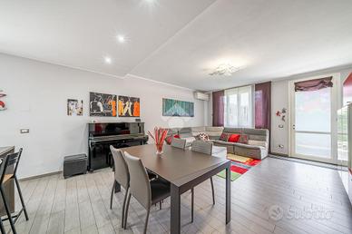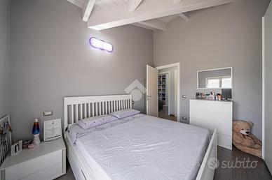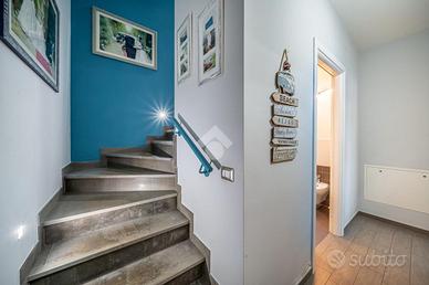 COSA SAPERE SULL'IMMOBILE: L'abitazione disposta su due livelli, è composta da: al piano terra, ingresso su ampio e luminoso soggiorno con cucina a vista, con possibilità di renderla abitabile, bagno e autorimessa collegata internamente. Al piano primo ed ultimo, tre camere da letto di cui una con affaccio su loggia coperta, bagno e comoda lavanderia.