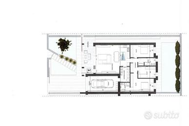 Proponiamo porzione di quadrifamiliare su un unico livello, arricchita da un ampio portico ideale per le sere d'estate e da un giardino privato di circa 327 mq.
