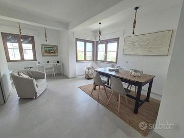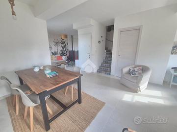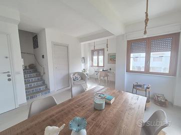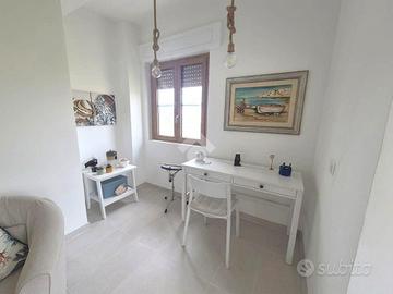 All'interno del consorzio residenziale privato di Marina Velca mare, proponiamo in vendita una porzione di villa quadrifamiliare completamente ristrutturata nel 2022. La villa è situata a brevissima distanza sia dalla spiaggia libera che dagli stabilimenti balneari di zona. Dispone di posti auto interni ed è contornata da un curato giardino di 250 mq con un ampio portico. Il primo livello della villa ospita un grande e luminoso soggiorno diviso in area living con uscita sul balcone vista panoramica , una graziosa sala da pranzo, un zona studio ed una cucina ,a completare il piano un comodo bagno di servizio. Al secondo livello troviamo la zona notte suddivisa in una spaziosa camera matrimoniale con uscita sull'altro balcone panoramico della villa, una seconda camera , una cameretta ed un bagno completo di doccia. L'immobile, completamente ristrutturato nel 2022, dispone di infissi in doppio vetro camera accessoriati con zanzariere e serrande elettriche, inoltre sono presenti climatizzatori nella zona notte. L'immobile è dotato di una stufa a pellet collegata all'impianto, che gestisce in autonomia sia il riscaldamento che la produzione di acqua calda sanitaria; per la massima praticità è presente anche un boiler elettrico integrato per l'acqua calda, utilizzabile alternativamente o nei mesi estivi. La villa è pronta per essere abitata da subito per trascorrere l'Estate al mare e vista la metratura e le caratteristiche risulta adatta anche come abitazione principale.