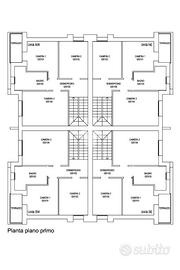 Il piano primo ospita la zona notte, composta da una camera matrimoniale, due camere singole, bagno principale e poggiolo.