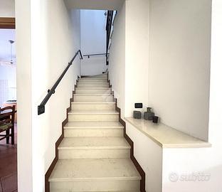 Il piano terra è completato da un antibagno, utilizzabile anche come lavanderia, e da un bagno finestrato dotato di doccia.