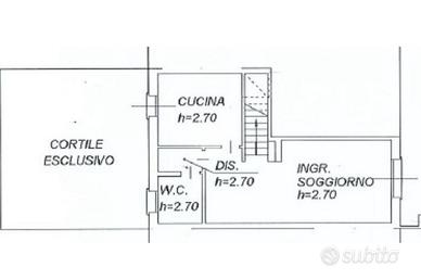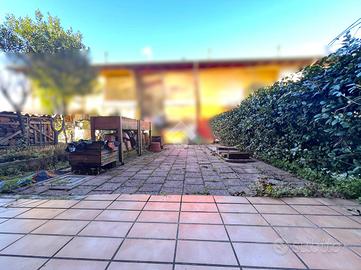L'ingresso conduce alla zona giorno, spaziosa e ben illuminata, separata dalla cucina abitabile, la quale ha accesso diretto allo scoperto esterno sul retro. Quest'ultimo è attualmente pavimentato, ma offre la possibilità di essere trasformato in un'area verde.