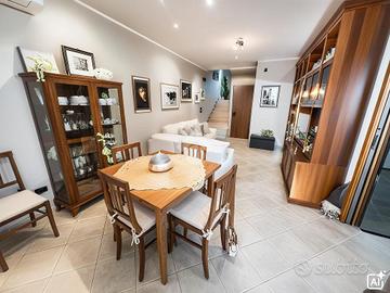 VILLAFRANCA PADOVANA - In un piacevole contesto residenziale in centro al paese, comodo a tutti i servizi principali. Porzione centrale di quadrifamiliare disposta su tre livelli con ingresso pedonale e carraio indipendente. Al piano terra dal portico d'ingresso accediamo nel soggiorno di circa 22 mq, separato dalla cucina di 9 mq. A completamento del piano troviamo il bagno lavanderia con doccia e garage. Salendo le scale raggiungiamo la zona notte, composta da tre camere da letto, una matrimoniale, due singole ed un bagno finestrato con doccia. Due delle tre camere sono servite da poggiolo, esposto ad est. Al piano mansardato è presente un grande ambiente con travi a vista di circa 40 mq, con la predisposizione ad un bagno. Fronte all'abitazione vi è un piccolo scoperto di 25 mq, mentre nel retro è presente una pompeiana esterna per un auto ed un camino a legna, utile per pranzi e cene conviviali.