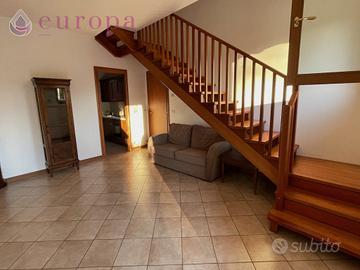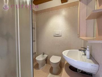 Porzione indipendente a schiera di rustico in sasso-mattoni, disposto su due piani, completamente ristrutturato da cima a fondo nel 2008 e parzialmente arredato. Si compone al piano terra di soggiorno con ripostiglio e cucina separata abitabile, con vista sul giardinetto di pertinenza retrostante. Proseguendo, la scala in legno porta al primo piano, tutto travato a vista, suddiviso in camera matrimoniale dotata di due balconi, bagno con doccia e camera singola. All'esterno, sul fronte, troviamo un posto auto coperto con cortile di pertinenza che lo collega all'ingresso casa.