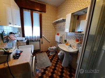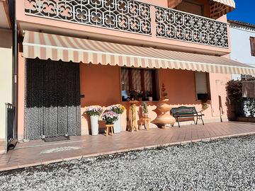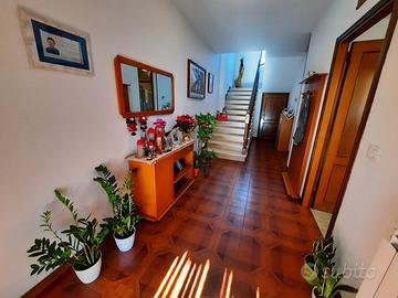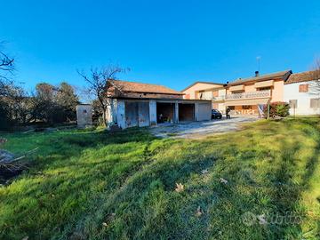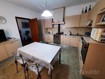 Proponiamo in vendita porzione centrale di schiera di fine anni '70 dalle ampie metrature interne e tenuta in ottime condizioni. Composta al piano terra da ingresso, cucina, dispensa, soggiorno, sottoscala e wc/lavanderia; al primo piano disimpegno, tre spaziose camere, ripostiglio, bagno e terrazzo. Di proprietà esclusiva dell'immobile su corpo distaccato 3 garage, un ricovero attrezzi e 14.500 mq di terreno agricolo. Rimane completa di tutto l'arredamento.