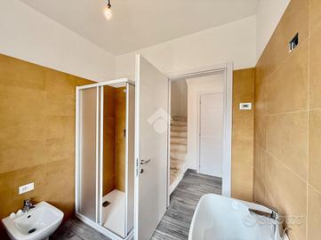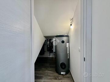 La porzione è composta da una zona giorno in open space con angolo cottura, un bagno finestrato con doccia e una zona sottoscala gestita a spazio ripostiglio e vano tecnico.