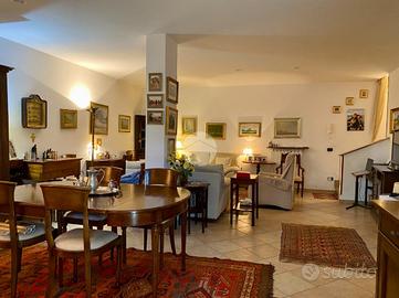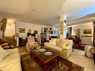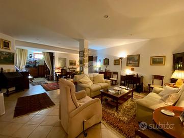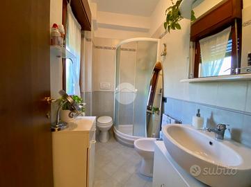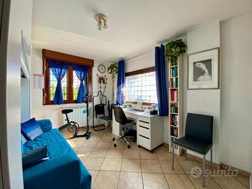 Dal soggiorno si accede, tramite una scala interna, alla sala hobby, un ampio spazio versatile ideale come zona relax, studio o ambiente per ospiti, completa di bagno con box doccia e finestra.