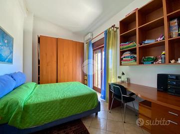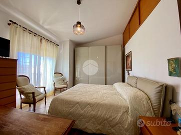 Salendo al primo piano, si accede alla zona notte composta da due spaziose camere matrimoniali, entrambe con vista mare: una dispone di un terrazzo attrezzato con lavandino e lavatrice, mentre l'altra offre un balcone panoramico, entrambe dotate di tende da sole. Sullo stesso livello si trova un bagno finestrato con vasca, dal quale si può ammirare il mare. Le camere sono tutte climatizzate con pompe di calore caldo/freddo, garantendo comfort in ogni stagione.