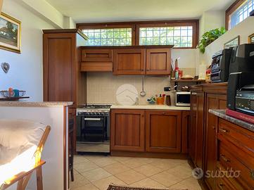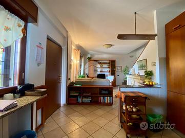 Al piano terra troviamo un luminoso soggiorno con angolo cottura, una camera matrimoniale e un bagno finestrato con box doccia.