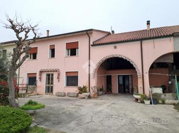 Arzergrande: porzione centrale di trifamiliare dalle ampie metrature, ideale anche per più nuclei familiari. L'immobile, sviluppato su due livelli, si compone al piano terra di un ampio ingresso e cucina separata dalla sala da pranzo, salotto, servizio e due camere matrimoniali. Le scale conducono al primo piano che presenta un secondo bagno finestrato con vasca, due camere matrimoniali, soggiorno, cucina abitabile e comodo ripostiglio. A completare portico dalle metrature generose con annesso fienile. In corpo staccato, magazzini e locale di sgombero utilizzabile come garage. Giardino di 1.700 mq e importante scoperto di proprietà.