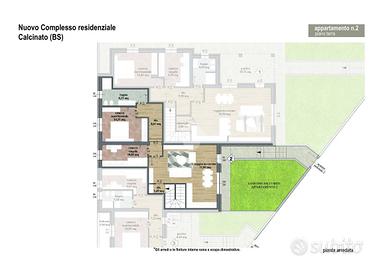 Soggiorno - cucina - n.1 camera matrimoniale - n.1 camera singola - bagno - disimpegno - ripostiglio - giardino