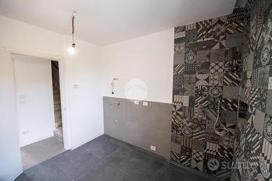 Dal cortile privato si raggiunge l'ampio portico che da sull'ingresso composto da soggiorno con cucina a vista, tramite disimpegno troviamo la zona notte caratterizzata da due camere da letto matrimoniali ed un bagno finestrato.