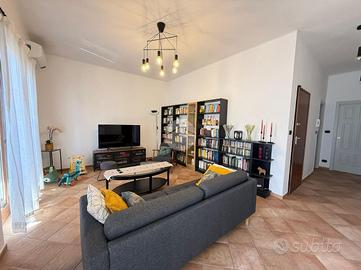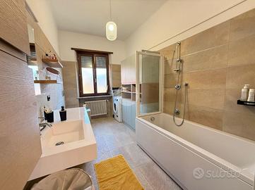 Nel cuore della località di Santa Maria, nel comune di Collegno, porzione di trifamiliare senza spese condominiali e con riscaldamento autonomo. L'immobile, di 115 mq, si trova al piano primo senza ascensore. La disposizione interna comprende quattro locali ben distribuiti, offrendo ampi spazi per ogni esigenza abitativa. Soggiorno ampio con affaccio sul terrazzo esposto a sud, cucina abitabile, due ampie camere da letto, di cui una con cabina armadio e l'altra con balcone e due bagni finestrati, l'immobile dispone di un pratico ripostiglio interno; non è presente la cantina. Infissi in legno/doppio vetro e zanzariere. L'immobile è dotato di aria condizionata, assicurando un ambiente confortevole in ogni stagione. Questa soluzione abitativa rappresenta un'opportunità interessante per chi cerca spazio e funzionalità in una zona tranquilla e ben servita. Caldaia sostituita nel 2022.