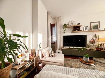 L'ingresso si apre su un comodo disimpegno che accompagna alla zona giorno, composta da un soggiorno luminoso e da una cucina separata, entrambi con accesso diretto al balcone principale, uno spazio esterno pratico e facilmente fruibile.