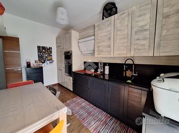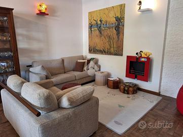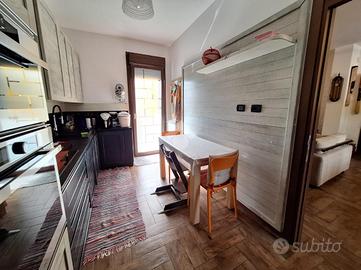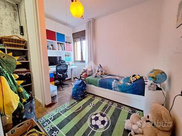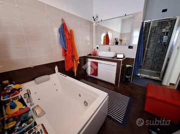 L'appartamento si trova al piano terra di una raffinata casa trifamiliare e accoglie con una zona giorno luminosa e ben distribuita, composta da soggiorno e cucina abitabile. La zona notte offre una spaziosa camera matrimoniale con cabina armadio e bagno en suite finestrato, oltre a una cameretta anch'essa dotata di cabina armadio e a un secondo ampio bagno finestrato, completo di box doccia e vasca multifunzione.