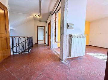 A Frosinone, nel cuore di un contesto residenziale di sole ville, in una traversa riservata di Via America Latina, proponiamo in vendita una prestigiosa porzione di trifamiliare che unisce indipendenza, ampiezza e una posizione invidiabile. La proprietà è dotata di una corte esterna privata e da un giardino, che accolgono l'abitazione garantendo massima privacy e uno sfogo verde immediato. Superato l'ingresso, una comoda scala conduce al primo piano, dove si sviluppa il cuore della casa. Un ampio disimpegno organizza gli spazi, conducendo verso un salotto luminoso e una cucina abitabile, entrambi con uscita diretta su uno splendido terrazzo panoramico che domina il paesaggio circostante. Questo livello è rifinito con un raffinato parquet e comprende due camere da letto, di cui una con bagno interno, oltre a un secondo bagno a servizio del piano. L'ultimo piano ospita una vasta zona mansardata caratterizzata dal calore del cotto, un ambiente estremamente versatile che si presta a essere modellato secondo le proprie necessità. Oltre a una camera da letto e un bagno già presenti, lo spazio residuo permette di ricavare agevolmente ulteriori stanze o zone hobby. L'immobile beneficia di impianti parzialmente rinnovati, con tracce già predisposte per completare l'ammodernamento in totale semplicità. Questa soluzione rappresenta la scelta ideale per chi desidera vivere in una zona esclusiva, personalizzando una dimora di pregio dai volumi generosi.