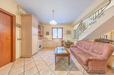 Al piano terra, un luminoso salone con camino fa da protagonista, un ambiente raffinato e accogliente che si apre verso la grande cucina abitabile con sala da pranzo cuore conviviale della casa, con accesso diretto al giardino. Sullo stesso livello si trovano una camera matrimoniale e un bagno con finestra, rendendo il piano completamente fruibile anche come zona giorno-notte.