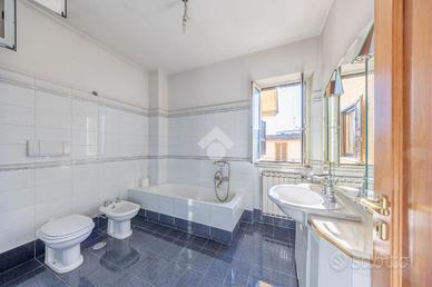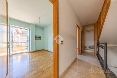 Al primo piano, la zona notte comprende non una, non due, ma ben tre camere da letto e un bagno, servite da un balcone che gode di vista riservata e tranquillità assoluta.