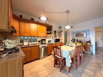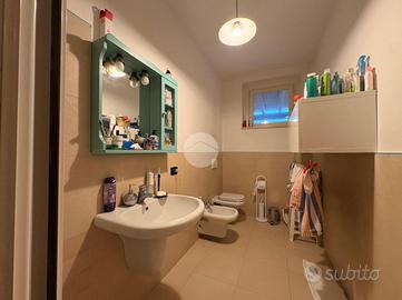 Il piano è inoltre occupato da un servizio igienico finestrato dotato di box doccia ed un ampio disimpegno armadiato funzionale come dispensa.