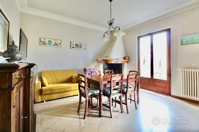 Al piano terra ci accoglie una spaziosa zona giorno, ben distribuita e funzionale: il soggiorno, ampio e luminoso, è separato dalla sala da pranzo, arricchita da un camino in muratura, e dal cucinotto, pratico e riservato.