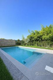 LAZISE NUOVA VILLA CLASSE A IN PRONTA CONSEGNA - Nella frazione di Pacengo, a soli 200 metri dalla riva del lago raggiungibile a piedi tramite stradina privata, proponiamo questa nuova villa, in contesto di 3 unità completamente indipendente e con piscina privata al sale.