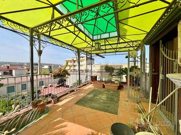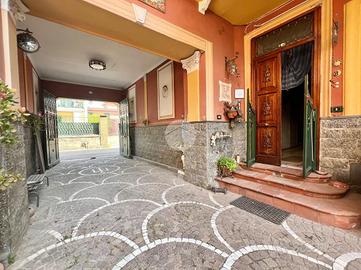 La maestosa villa situata in Via Indipendenza è collocata in una posizione strategica, ottimamente collegata al centro di Mugnano e alla circumvallazione esterna che permette di raggiungere facilmente Napoli centro e i comuni circostanti. Ideale sia per una famiglia che per chi cerca una struttura bifamiliare, la villa si sviluppa su più piani ed è caratterizzata da uno stile imponente, con un grande giardino di 400 mq che rappresenta uno dei principali punti di forza della proprietà. Al piano terra si trova il primo appartamento, con un ingresso che conduce a una spaziosa cucina abitabile, due camere da letto di generose dimensioni e un bagno con doccia. Inoltre, vi è una comoda tettoia ideale per cene all'aperto o feste estive. Quest'ultima è estremamente funzionale per l'immobile dato che serve come base per i pannelli fotovoltaici che hanno una potenza di circa 6 kWh. Il primo piano, accessibile tramite una scala indipendente, presenta un ampio salone con librerie imponenti e doppia illuminazione, due camere da letto, una cucina abitabile e due bagni. Tutti gli ambienti si affacciano su una balconata con vetri colorati che creano suggestivi giochi di luce. La cucina e il salone dell'appartamento al primo piano sono caratterizzati da caminetti di pregio a legna, mentre la cucina dell'appartamento al piano terra è servita da una stufa in ghisa a legna. Un ultimo piano, attualmente adibito a sottotetto, culmina con un terrazzino con vista sul Vesuvio, perfetto per aperitivi al tramonto, accessibile tramite una scala a chiocciola. La villa include una cantina e un garage, la prima adatta per le conserve invernali e il secondo con posto auto. L'edificio dispone inoltre di un autoclave con cisterne da 2000 litri ciascuna per la riserva d'acqua.