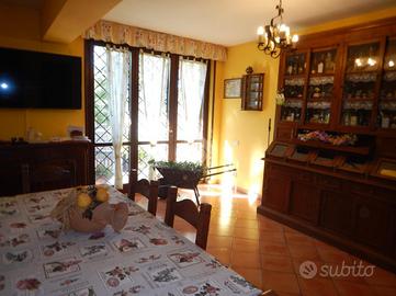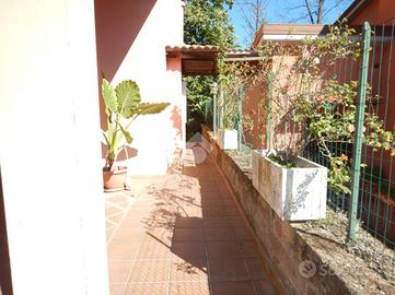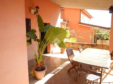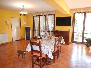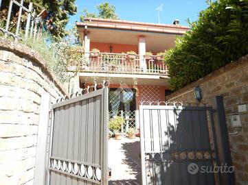 All'interno del centro residenziale di Colle Farnese, immersa nel verde ed in posizione dominante, proponiamo in vendita una porzione di trifamiliare quasi completamente indipendente in quanto unita solo da due tettoie alle altre due unità, sviluppatesi su tre piani fuori terra. Al piano seminterrato troviamo una grandissima e luminosa taverna con angolo cucina in muratura, bagno con doccia e camera; al piano terra c'è un ampio salone con grande terrazzo, cucina in muratura, bagno con doccia e camera; al piano primo si trovano una camera matrimoniale con terrazzo, cameretta ed ulteriore bagno con vasca. L'immobile è circondato da un giardino su più livelli in parte pavimentato. La casa è dotata di grate e persiane in ferro, impianto di allarme, condizionatori, caldaia nuova a metano, stufa a pellet, termocamino a legna, ed ampia intercapedine accessibile che circonda l'intero immobile. Vista l'ampia metratura e la posizione è un'ottima soluzione per due nuclei familiari e per chi ama la privacy e la tranquillità.