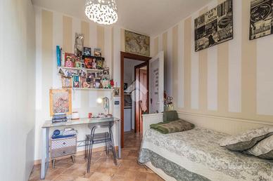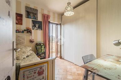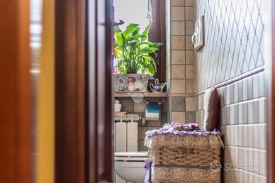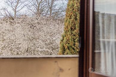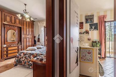 Al piano superiore si sviluppa la zona notte, con due camere, entrambe con accesso al balcone con affaccio sul verde, di cui una cameretta, e un bagno finestrato con vasca.
