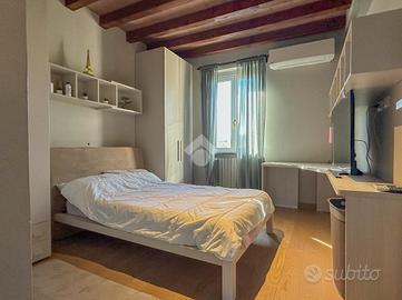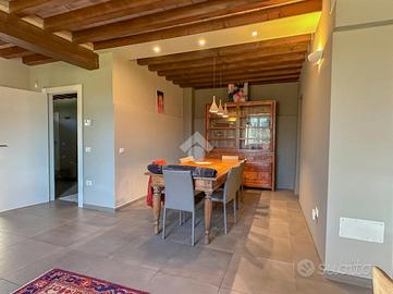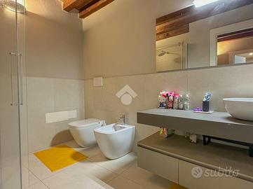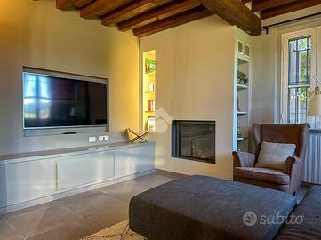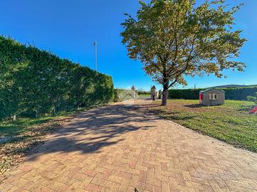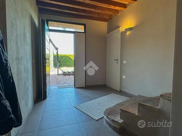 L'ingresso avviene tramite un cortile privato che introduce al curato giardino di proprietà, ideale per momenti di relax e convivialità all'aperto. Il portico, spazioso e facilmente arredabile, rappresenta un raffinato prolungamento della zona living, perfetto per vivere gli spazi esterni in ogni stagione.