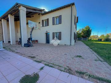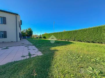 Porzione di trifamiliare con giardino privato e portico in contesto residenziale riservato