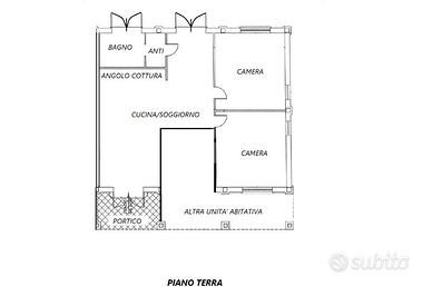 Questa unità, è disposta interamente al piano terra, per complessivi 140 mq dove è possibile ricavare un'ampia zona giorno openspace con cucina a vista, due camere da letto matrimoniali, antibagno, bagno e circa 800 mq di giardino privato.