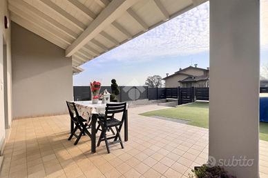 In pieno centro del paese, proponiamo in vendita una porzione di trifamiliare di testa di recente costruzione, risalente al 2022.