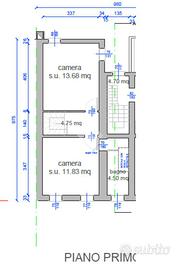 Piano primo: due camere matrimoniali e bagno finestrato.