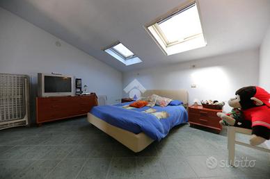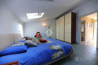 -Al piano intermedio, una camera da letto mansardata, balcone e un bagno offrono comfort e privacy.