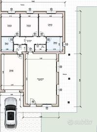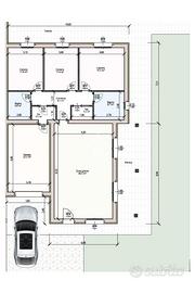 La villa offre una zona giorno in open space che si affaccia su un ampio portico con giardino privato, su tre lati, ideale per chi cerca spazi esterni da vivere. La soluzione comprende tre camere da letto, perfette per famiglie o per chi necessita di uno studio o una stanza per gli ospiti. Sono presenti due bagni moderni ed un comodo garage direttamente collegato all'abitazione.