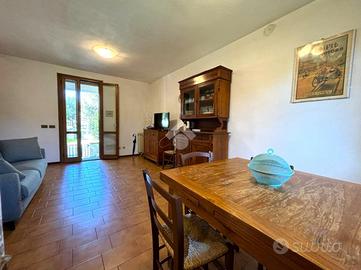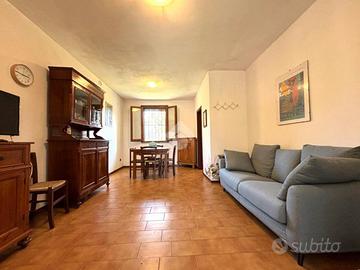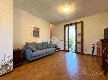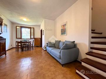 Al piano terra, si trova un accogliente soggiorno con cucinotto separato, ideale per momenti di relax e convivialità. Salendo al primo piano, si accede alle due camere matrimoniali, di cui una dotata di balcone, e il bagno finestrato con doccia. L'immobile è dotato di riscaldamento e aria condizionata, garantendo comfort in ogni stagione.