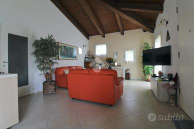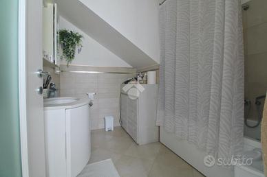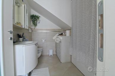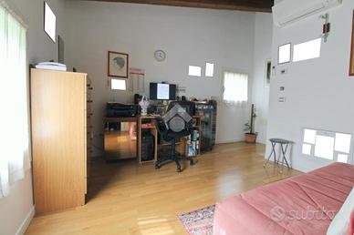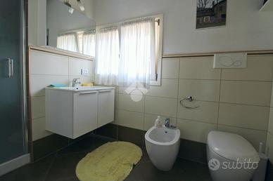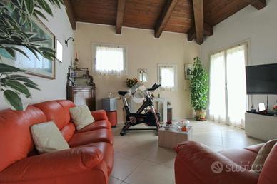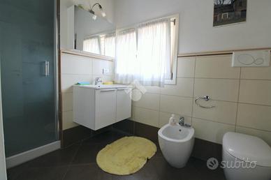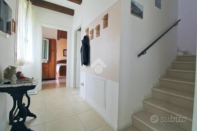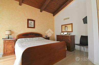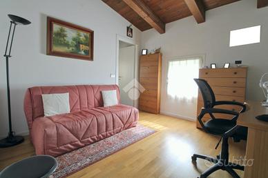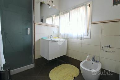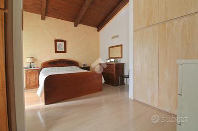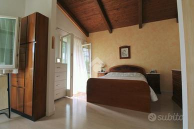 Il piano terra è completato da un'ampia camera matrimoniale, con accesso diretto sul giardino e da un bagno cieco con vasca.