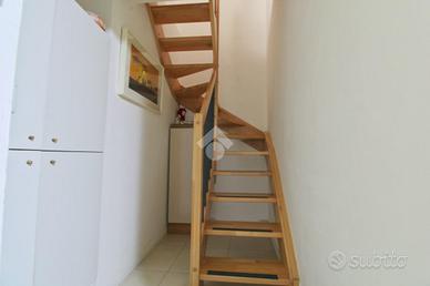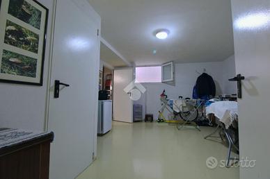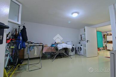 Dall'ampio soggiorno, tramite la scala a chiocciola, si accede poi alla comoda zona lavanderia nel seminterrato, pensata per soddisfare le esigenze quotidiane.
