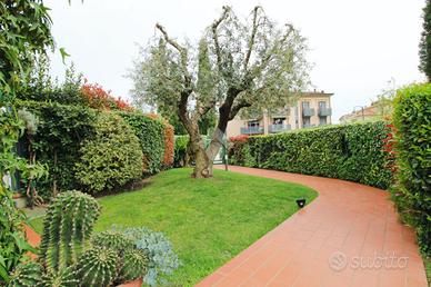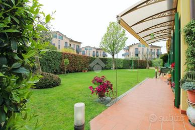 L'ingresso indipendente si apre sul giardino di 210 mq, il quale offre uno spazio verde privato, perfetto per il relax all'aria aperta.