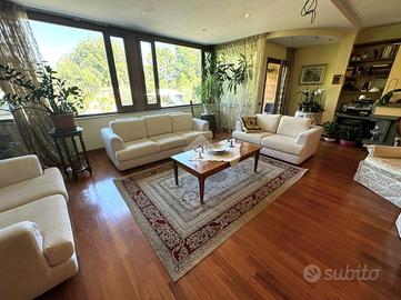 Al primo piano si sviluppa la zona notte composta da quattro ampie camere da letto, di cui la patronale con bagno en suite e cabina armadio, secondo bagno e 2 balconi.