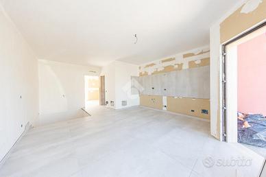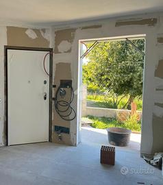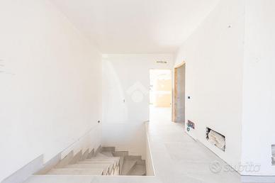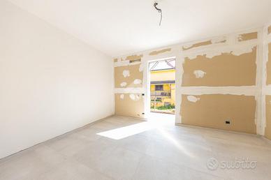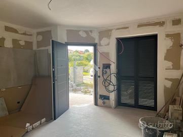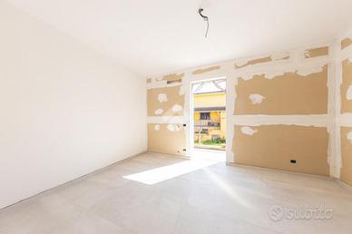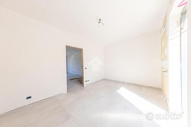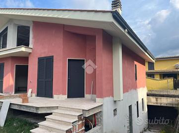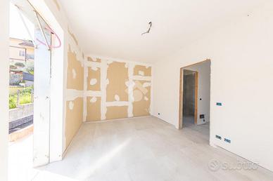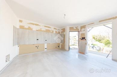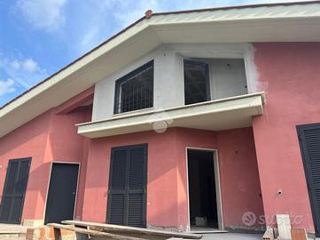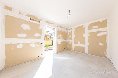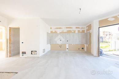 Proponiamo in vendita una porzione angolare di villa trifamiliare, mai abitata, in corso di rifiniture interne, con giardino e box auto fuori sagoma. Il fronte strada verrà asfaltato ad ultimazione dei lavori e l'immobile è così suddiviso: